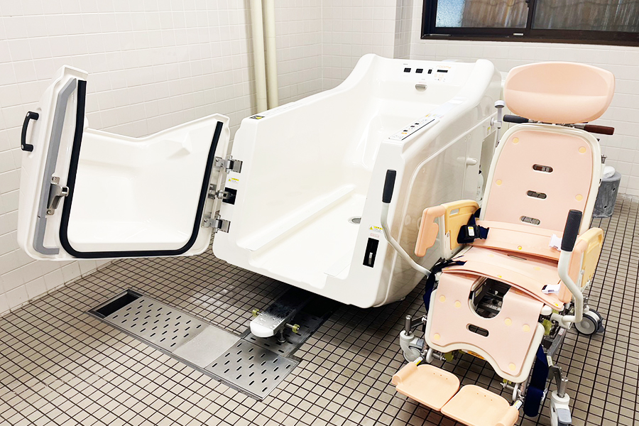 ストレッチャーで入れる浴槽となっております。